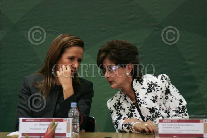 MÉXICO, D.F., 13JULIO2010.- Margarita Zavala, esposa del Presidente de México, encabezó el evento denominado "Resultados del Módulo de Trabajo Infantil 2009", que se celebro en el salón Adolfo López Mateos de la residencia oficial de los Pinos. En la imagen la acompañan, Eduardo Sojo, Javier Lozano, María Cecilia Landerreche y Guillermo Tamborrel Suárez. FOTO: MARCO POLO GUZMÁN HERNÁNDEZ/CUARTOSCURO.COM