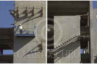 México, D.F. 16 FEBRERO 2004.- Un albañil de la construcción de la Universidad de la Ciudad de México, ubicada a un costado del panteón de San Lorenzo entre las delegaciónes Tláhuac e Iztapalapa, realiza su trabajo. FOTO: Sandra Perdomo/CUARTOSCURO.COM
