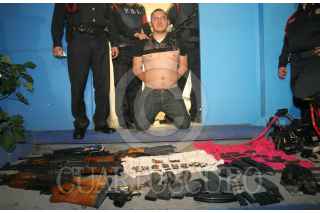 MÉXICO, D.F., 14JUNIO2010.- Kevin Hernández Catalán de 20 años de edad fue capturado en los límtes del D.f. y el Estado de México después de una persecusión donde participaron elementos policiacos de las dos entidades. Al momento de la captura se le decomisaron más de 10 armas largas, armas cortas y más de 500 cartucho útiles. Este sujeto aceptó su participación en el tráfico de armas de la organización delictiva La Familia Michoacana que opera en la zona Oriente de la entidad mexiquense FOTO: LUZ ACEVEDO/CUARTOSCURO.COM