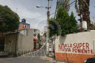 MÉXICO, D.F., 14JULIO2010.- Vecinos de la colonia La Malinche en la delegación Magdalenas Contreras, colocaron mantas y pintas de desacuerdo en la construcción de la "Super Vía Poniente" que correrá de Santa Fe, en la delegación Álvaro Obregón, a Luis Cabrera, en Magdalena Contreras. FOTO: SAÚL LÓPEZ/CUARTOSCURO.COM