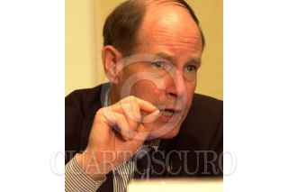 México, D.F. 17 FEBRERO 2004.- Robert Lawrence (embajada de Canadá), David Dodge, gobernador del Banco de Canadá, Michael Smith, traductor, al término de la conferencia de prensa, donde se conmemoraron los 60 años de relaciones diplomáticas entre México y Canadá. FOTO: Sandra Perdomo/CUARTOSCURO.COM