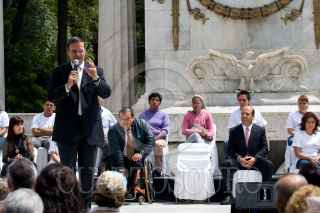 MÉXICO D.F., 15JULIO2010.- Héctor Slim, Director de Telmex, al termino de la presentación de "Telmex 2010, Impulso a la Innovación Tecnológica” esto en el Hemiciclo a Juárez de la Alameda Central, el gobierno capitalino en colaboración con Telmex, realizara la instalación de casetas telefónicas para personas con discapacidad y la puesta en marcha de bibliotecas digitales en el Centro Histórico, donde se ofrece el préstamo de una computadora lap-top durante 15 días y donde se incluye el servicio gratuito de WiFi en sitios públicos. FOTO: GUILLERMO PEREA/CUARTOSCURO.COM