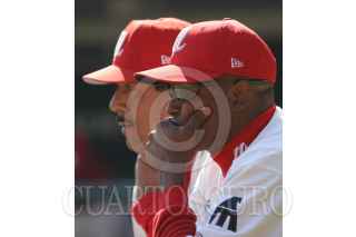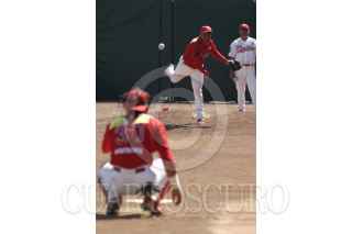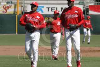 México, D.F. 17 Febrero 2004.- Los pichers Patrick Broswell y Ben Rivera de Los Diablos del México durante el entremaniento de los diablos en el foro sol. FOTO: Nelly Salas/CUARTOSCURO.COM