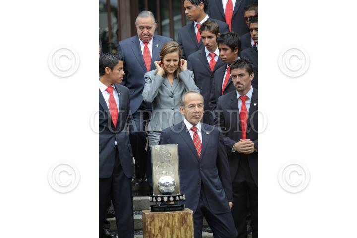 MÉXICO, D.F., 16JULIO2010.- Valentín Díez Morodo, dueño del Club Deportivo Toluca, durante la toma de foto oficial que se tomaron los Diablos Rojos del Toluca con el Presidente de México en su calidad de campeones del Torneo Bicentenario de la liga mexicano de fútbol, en las escalinatas de la casa Miguel Alemán de la residencia de oficial de Los Pinos. FOTO: MOISÉS PABLO/CUARTOSCURO.COM