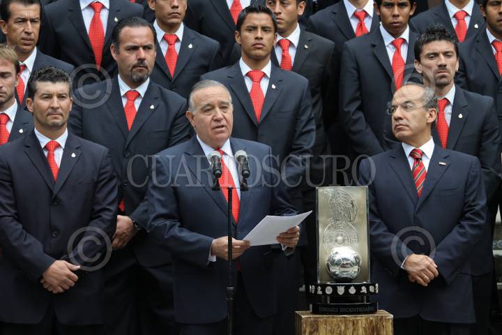 MÉXICO, D.F., 16JULIO2010.- Valentín Díez Morodo, dueño del Club Deportivo Toluca, durante la toma de foto oficial que se tomaron los Diablos Rojos del Toluca con el Presidente de México en su calidad de campeones del Torneo Bicentenario de la liga mexicano de fútbol, en las escalinatas de la casa Miguel Alemán de la residencia de oficial de Los Pinos. FOTO: MOISÉS PABLO/CUARTOSCURO.COM