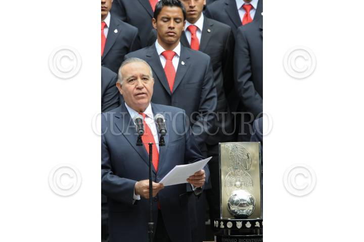 MÉXICO, D.F., 16JULIO2010.- Valentín Díez Morodo, dueño del Club Deportivo Toluca, durante la toma de foto oficial que se tomaron los Diablos Rojos del Toluca con el Presidente de México en su calidad de campeones del Torneo Bicentenario de la liga mexicano de fútbol, en las escalinatas de la casa Miguel Alemán de la residencia de oficial de Los Pinos. FOTO: MOISÉS PABLO/CUARTOSCURO.COM