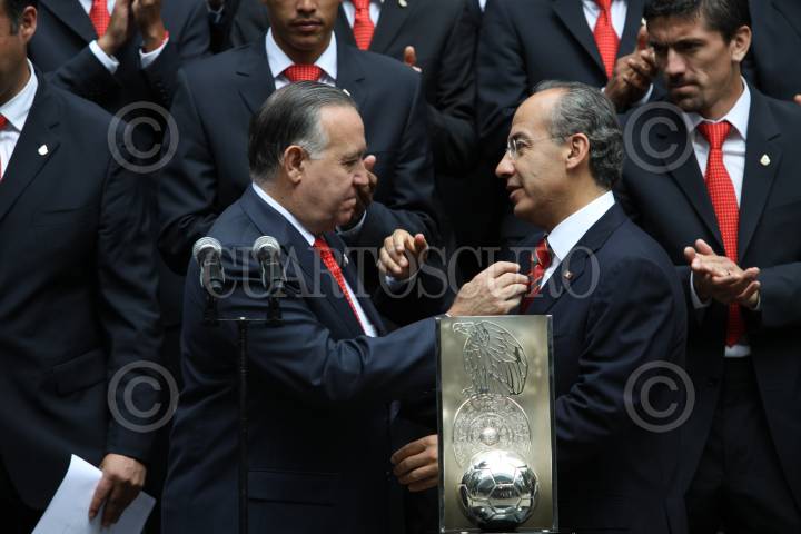 MÉXICO, D.F., 16JULIO2010.- Valentín Díez Morodo, dueño del Club Deportivo Toluca, durante la toma de foto oficial que se tomaron los Diablos Rojos del Toluca con el Presidente de México en su calidad de campeones del Torneo Bicentenario de la liga mexicano de fútbol, en las escalinatas de la casa Miguel Alemán de la residencia de oficial de Los Pinos. FOTO: MOISÉS PABLO/CUARTOSCURO.COM