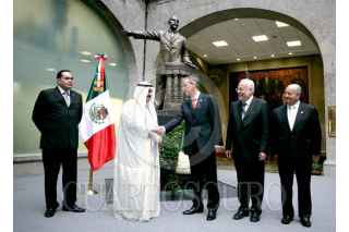 MÉXICO, D.F., 16JULIO2010.- Nasser Al-Sabah, Primer Ministro de Kuwait, realizó una visita a la sede del Senado de la República, ahí fue recibido por un grupo de senadores encabezdos por José González Morfín y Carlos Jímenez Macías. En la imagen se aprecia el la estatua en honor a Belisario Domínguez. FOTO: CUARTOSCURO.COM