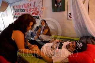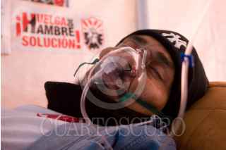 MÉXICO, D.F., 18JULIO2010.- Miguel Ibarra es uno de los extrabajadores de la extinta Compañía de Luz y Fuerza del Centro que cumplieron 85 días en huelga de hambre ya que piden sean recontratados los 45 mil trabajadores que perdieron su empleo. FOTO: GUILLERMO PEREA/CUARTOSCURO.COM