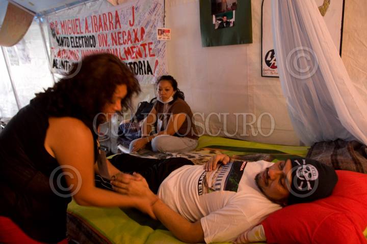 MÉXICO, D.F., 18JULIO2010.- Miguel Ibarra es uno de los extrabajadores de la extinta Compañía de Luz y Fuerza del Centro que cumplieron 85 días en huelga de hambre ya que piden sean recontratados los 45 mil trabajadores que perdieron su empleo. FOTO: GUILLERMO PEREA/CUARTOSCURO.COM