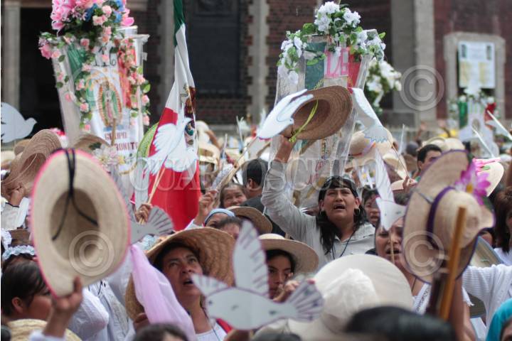 MÉXICO, D.F., 18JULIO2010.- Cientos de feligreses provenientes en su tradicional peregrinación de Querétaro se reunieron en la Basilica de Guadalupe para pedir en misa "Por la Paz en México". FOTO: MARCO POLO GUZMÁN HERNÁNDEZ/CUARTOSCURO.COM