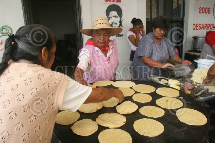 SAN SALVADOR ATENCO, ESTADO DE MÉXICO, 18JULIO2010.- Mujeres de San Salvador Atenco, preparan comida para celebrar la llegada de América del Valle Medina, hija de los líderes del Frente de Pueblos en Defensa de la Tierra de San Salvador Atenco, Ignacio del Valle y Trinidad Ramirez, , después de que la Procuraduría General de Justicia del Estado de México suspendiera la orden de aprehensión que tenía en su contra desde el 2006 por secuestro equiparado y por el cual permaneció profuga de la justicia por mas de cuatro años. FOTO: SAÚL LÓPEZ/CUARTOSCURO.COM