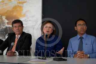 MÉXICO D.F., 19JULIO2010.- Xóchitl Gálvez excandidata a la gobernatura del Estado de Hidalgo por la coalición “Hidalgo Nos Une” acompañada de Gonzalo Trejo, Dirigente del PAN y el abado Carlos Montiel, en conferencia de prensa dio a conocer que durante la jornada electoral del 4 de julio se vivieron irregularidades, por las que se interpuso el recurso para anularlas en el Tribunal Electoral del estado de Hidalgo, el tribunal tendrá hasta el 20 de agosto para resolver el recurso de inconformidad y una vez satisfecha esa instancia, se recurrirá al Tribunal Electoral del Poder Judicial de la Federación (TEPJF) para buscar la anulación de la elección”. FOTO: GUILLERMO PEREA/CUARTOSCURO.COM