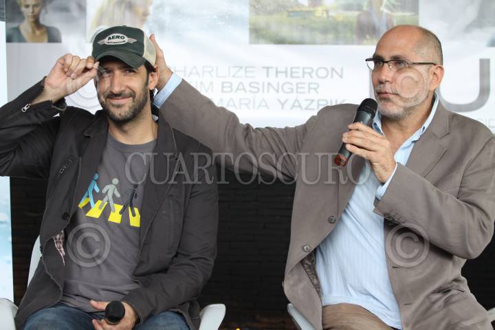 MÉXICO, D.F., 20JULIO2010.- José María Yazpik, Guillermo Arriaga, director mexicano y Tessa la, presentaran la película "Fuego", ópera prima del guionista de Amores Perros, Babel y 21 Gramos. Cinta que cuenta con la participación de las internacionales Charlize Theron y Kim Bassinger y locaciones en nuestro país y Estados Unidos. FOTO: MOISÉS PABLO/CUARTOSCURO.COM