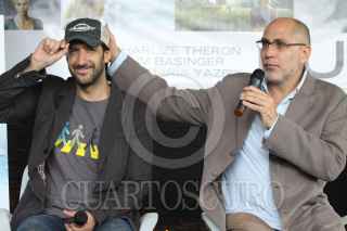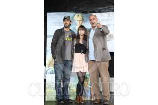 MÉXICO, D.F., 20JULIO2010.- José María Yazpik, Guillermo Arriaga, director mexicano y Tessa la, presentaran la película "Fuego", ópera prima del guionista de Amores Perros, Babel y 21 Gramos. Cinta que cuenta con la participación de las internacionales Charlize Theron y Kim Bassinger y locaciones en nuestro país y Estados Unidos. FOTO: MOISÉS PABLO/CUARTOSCURO.COM