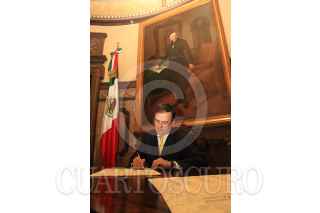 MÉXICO, D.F., 20JULIO2010.- Marcelo Ebrard Casaubón, Jefe de Gobierno, firmó los pergaminos históricos denominados “A 200 años de la lucha de la Independencia y 100 años de la Revolución. En cumplimiento al acuerdo que resultó de la XXXVIII Reunión Ordinaria de la Conferencia Nacional de Gobernadores (CONAGO), celebrada en Morelia, Michoacán, el pasado 23 de marzo. FOTO: CUARTOSCURO.COM