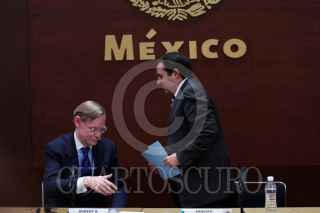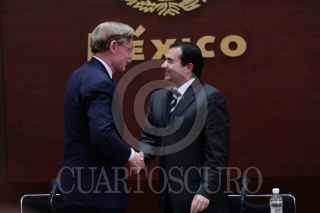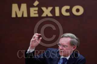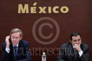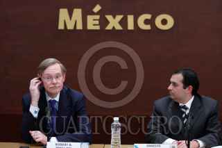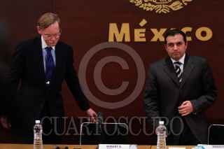 MEXICO, D.F., 21JULIO2010.- Robert Zoellick, presidente del banco Mundial, y Ernesto Cordero Arroyo, Secretario de hacienda y Crédico Público, durante una conferencia de prensa en la Residencia oficial de Los Pinos. FOTO: IVAN STEPHENS/CUARTOSCURO.COM