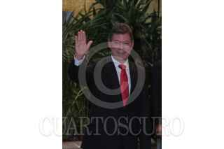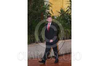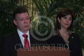 MÉXICO, D.F., 22JULIO2010.- Juan Manuel Santos; presidente electo de Colombia, saluda a los asistentes tras ofrecer conferencia de prensa en el salón Manuel Ávila Camacho. FOTO: MARCO POLO GUZMÁN HERNÁNDEZ/CUARTOSCURO.COM