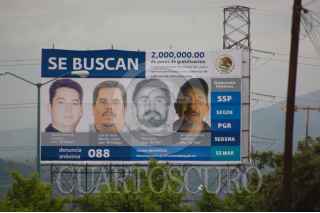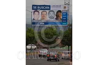 MORELIA, MICHOACÁN, 22JULIO2010.- El Gobierno Federal instaló un espectacular donde ofrece dos millones de pesos por información que lleve a la captura de líderes del cártel de La Familia Michoacana, el espectacular fue instalado en el periferico sur, justo frente a un centro comercial. FOTO: LEOVIGILDO GONZALEZ/CUARTOSCURO.COM