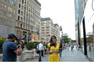 NEW YORK, ESTADOS UNIDOS, 23JULIO2010.- Ruth Ocumares, Miss Republica Dominicana 2009, durante la grabacion de un programa televisivo en la V Avenue de New York, la calle mas cara y lujosa del mundo. FOTO: MARIA DI PAOLA BLUM/CUARTOSCURO.COM