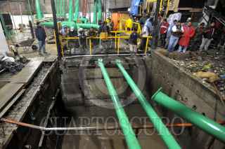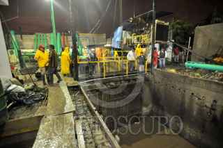 IXTAPALUCA, ESTADO DE MEXICO, 23JULIO2010.- Un Carcamo que desemboca en el canal de la Compañía y que proviene del Canal de Guadalupe, desbordó el agua de las lluvias a causa de un tapón de basura que se formó en los tubos de este, por lo que inundó algunas calles cercanas en la colonia El Molino. Hasta este lugar arribó el presidente Municipal de esta demarcación para tomar conocimiento de los daños en donde indicó se tomaran las medidas necesarias para evitar este tipo de emergencias en la zona. FOTO: LUIS CARBAYO/CUARTOSCURO.COM