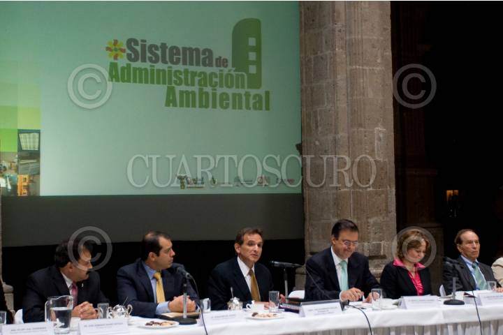 MÉXICO D.F., 26JULIO2010.- Enrique Pascual, Embajador de los Estados Unidos, acompañado de Marcelo Ebrard Casaubon, Jefe del Gobierno Capitalino, durante la Instalación del Comité del Sistema de Administración Ambiental de la Administración Pública del Distrito Federal. FOTO: GUILLERMO PEREA/CUATOSCURO.COM