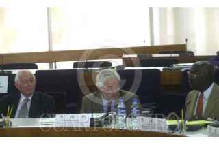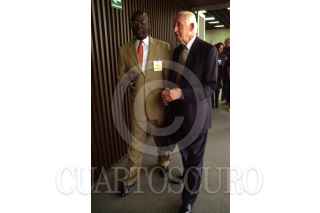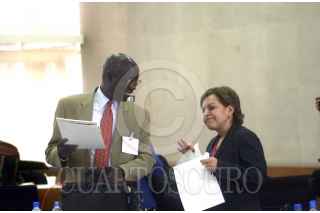 México D.F 20FEB2004.- Francis Deng, representante del secretario general de las Naciones Unidas conversa con Luis H. Alvarez, presidente de la COCOPA al término de la Clausura del Foro Internacional de Personas Desplazadas que organizo la SRE. FOTO: Eunice Adorno/CUARTOSCURO.COM