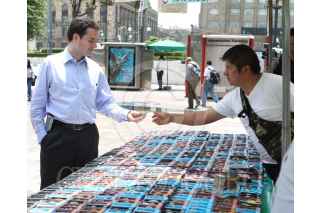 MÉXICO, D.F., 27JULIO2010.- Carlo Fabián Pizano Salinas, diputado local panista, recorrió las inmediaciones de la Alameda Central, para constatar su deterioro en el que se encuentra este parque debido al problema de ambulantaje que sufre desde hace varios años y la negligencia de las autoridades encargadas de darle mantenimiento. Durante el recorrido el legislador recogió basura que se encontró en su camino y la coloco en el cesto. FOTO: MOISÉS PABLO/CUARTOSCURO.COM
