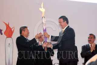 MÉXICO, D.F., 27JULIO2010.- Marcelo Ebrard Casaubon, encabezó la Ceremonia de Bienvenida de la Flama Olímpica de la Juventud Singapur 2010. FOTO: CUARTOSCURO.COM