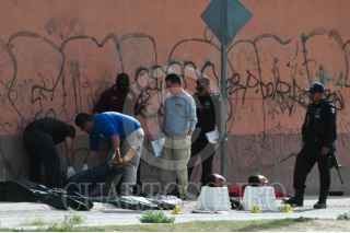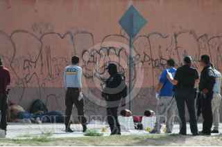 CIUDAD JUAREZ, CHIUAHUA, 28JULIO2010.- Dos sujetos, fueron encontrados decapitados en el fraccionamiento Hacienda de las Torres en las calles Desierto de Gobi y Desierto de Siria, aun costado de sus cuerpos, se encontraron sus cabezas sobre una hielera que contenía los siguientes mensajes, "soy carjacking y soy de La Línea y azteca" y "soy secuestrador y soy azteca". Hasta el momento, continúan las investigaciones para conocer los nombres de las personas. FOTO: NACHO RUÍZ/CUARTOSCURO.COM