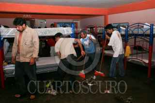 MÉXICO, D.F., 28JULIO2010.- La casa del Migrante ubicada en el municipio de Tultitlan, a un costado del paso del ferrocarril, atiende a los mexicanos y centroamericanos que buscan el Sueño Americano a pesar de la posible entrada en vigor de la ley SB1070 en el estado de Arizona. En el lugar, se brindan servicios de agua, comida y ropa con la finalidad de ayudarlos para que el camino en los trenes no se les haga tan pesado. FOTO: ENRIQUE ORDÓÑEZ/CUARTOSCURO.COM