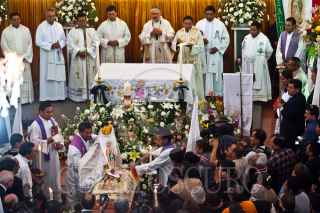 QUERÉTARO, QUERÉTARO, 28JULIO2010.- Diego Monroy, Abad de la Basílica de Guadalupe en la ciudad de México; presidió la misa de cuerpo presente del padre José Morales Flores, conocido periodista, profesor universitario, cronista deportivo y ex vocero de la diócesis de Querétaro; que falleció durante su atención médica el día de ayer. FOTO: DEMIAN CHÁVEZ/CUARTOSCURO.COM