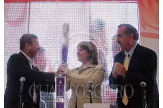 MÉXICO, D.F., 28JULIO2010.- Martha Delgado, Secretaria del Medio Ambiente, Recibió la Flama Olímpica de los Juegos Olímpicos de la juventud Singapur 2010. FOTO: CUARTOSCURO.COM