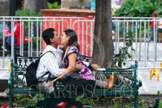 MÉXICO, D.F., 28JULIO2010.- Una pareja se besa en la banca del Centro de Coyoacán. FOTO: ISAAC ESQUIVEL/CUARTOSCURO.COM