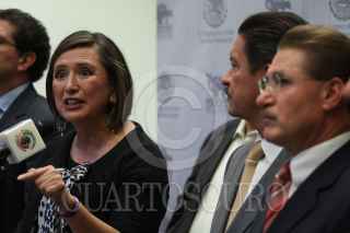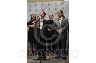MÉXICO, D.F., 28JULIO2010.- Xochitl Gálvez Ruíz, ex-candidata a la gubernatura en Hidalgo, Carlos Navarrete, presidente de la mesa directiva de la Comisión Permanente y José Rosas Aispuro, ex-candidato a la gubernatura en Durango, ofrecieron una conferencia de prensa en la cual hablaron sobre los procesos de impugnación de los procesos electorales en sus respectivos estados, esto en el Senado de la República. FOTO: MOISÉS PABLO/CUARTOSCURO.COM