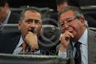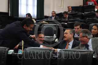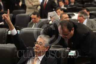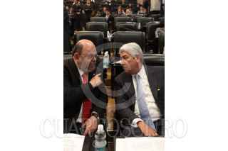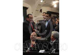 MÉXICO, D.F., 28JULIO2010.- El senador perredista Silvano Aureoles Conejo, saluda a los priistas Adolfo Toledo Infanzón, Manlio Fabio Beltrones Rivera y Francisco Rojas, Gutiérrez estos últimos coordinadores de sus correligionarios en el Senado y la Cámara de Diputados respectivamente, durante la sesión de la Comisión Permanente. FOTO: MOISÉS PABLO/CUARTOSCURO.COM