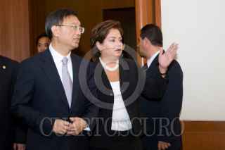 MÉXICO D.F., 29JULIO2010.- Patricia Espinosa, titular de la Secretaria de Relaciones Exteriores, acompañada de Yin Hengmin, Primer Ministro de la Republica Popular China, durante la Inauguración de IV Reunión de la Comisión Binacional Permanente México-China, esto en las instalaciones de esta secretaria. FOTO: GUILLERMO PEREA/CUARTOSCURO.COM