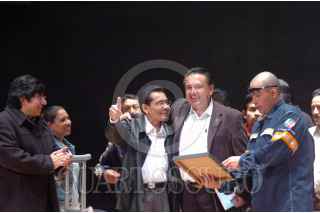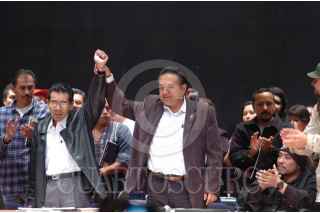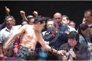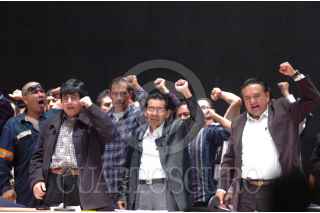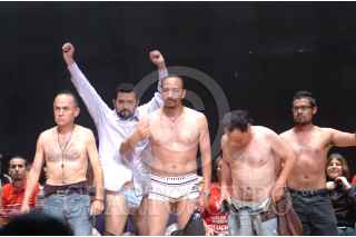 MÉXICO, D.F., 29JULIO2010.- Trabajadores del Sindicato Mexicano de Electricistas que mantuvieron una huelga de hambre, encabezados por Cayetano Cabrera, se desnudaron durante una conferencia de prensa en la sede del SME ubicada en Insurgentes. FOTO: SILVIA RODRÍGUEZ/CUARTOSCURO.COM