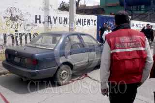 MÉXICO, D.F., 29JULIO2010.- En la calle de Jade casi esquina con la calle circuito Cuauhtemoc en la colonia Cuauhtemoc perímetro de Ecatepec, fue descubierto el cuerpo al interior de la cajuela del auto Tsuru con placas de circulación 561-NBS de color azul marino y en el interior del auto la cabeza envuelta en una bolsa de plástico. Al lugar arribaron peritos para tomar conocimiento de los hechos y levantar el acta correspondiente a los hechos. FOTO: LUIS CARBAYO/CUARTOSCURO.COM