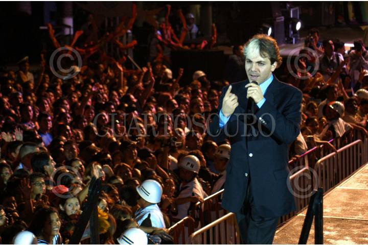Veracruz, Veracruz, 21FEBRERO2004.- El cantante Cristian Castro, cantó durante la ceremonia de coronación de la reina del carnaval Veracruz 2004, cientos de porte3ños acudieron a la plaza central de esta ciudad para disfrutar show del artista. Foto: Félix Cúneo/CUARTOSCURO.COM