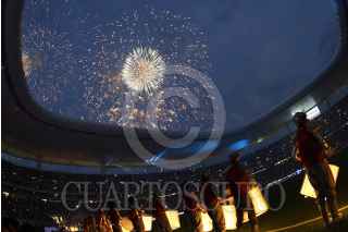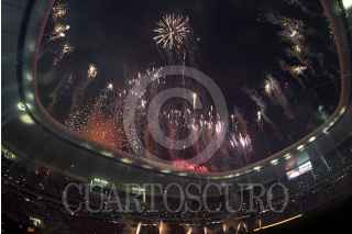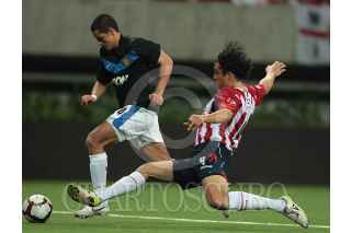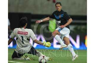 GUADALAJARA, JALISCO, 30JULIO2010.- Las Chivas rayadas del Guadalajara inauguraron esta noche su nuevo estadio "Omnilife" derrotando al Mancheste United tres goles a dos en partido amistoso. Se destaca la actuación de Javier el "Chicharito" Hernández, quien anotó el primer gol en esta cancha. En la imagen, Hernández durante su actuación en el segundo tiempo con la playera del equipo ingles. FOTO: JOSE MARIA MARTINEZ BURGOS/CUARTOSCURO.COM