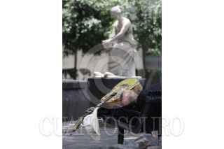 MÉXICO, D.F., 31JULIO2010.- Un músico duerme sobre una banca en el jardín de Los Santos Degollados en la calle de Independencia en la colonia Juárez, mientras su sueños son velados por una estatua. FOTO: MOISÉS PABLO/CUARTOSCURO.COM