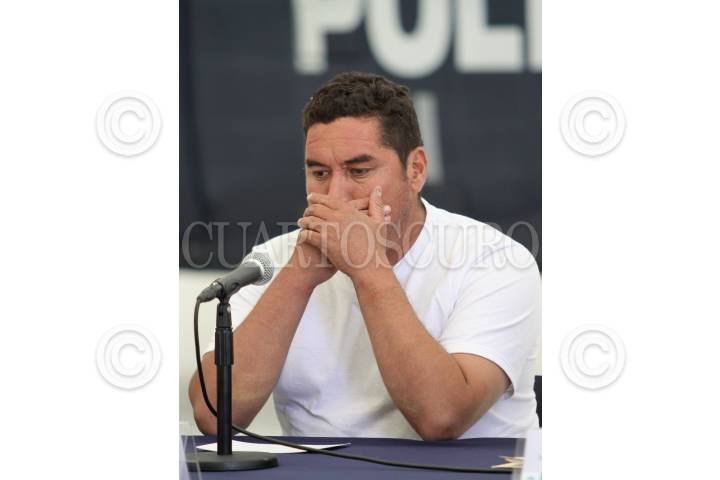 MÉXICO, D.F., 31JULIO2010.- Genaro Garcia Luna, secretario de Seguridad Pública Federal y el reportero Javier Canales Fernández de Multimedios Torreón al termino de una una conferencia de prensa en el Centro de Alto Mando de la Policía Federal en Iztapalapa después de ser rescatados los periodistas por elementos de la Policía Federal en un operativo en la colonia Miguel de la Madrid en Gómez Palacio, Durango. FOTO: RODOLFO ANGULO/CUARTOSCURO.COM