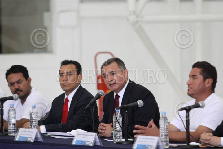 MÉXICO, D.F., 31JULIO2010.- Genaro Garcia Luna, secretario de Seguridad Pública Federal y el reportero Javier Canales Fernández de Multimedios Torreón al termino de una una conferencia de prensa en el Centro de Alto Mando de la Policía Federal en Iztapalapa después de ser rescatados los periodistas por elementos de la Policía Federal en un operativo en la colonia Miguel de la Madrid en Gómez Palacio, Durango. FOTO: RODOLFO ANGULO/CUARTOSCURO.COM