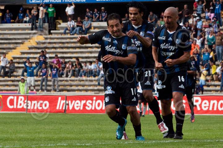 QUERÉTARO, QUERÉTARO, 29ABRIL2010.- Anotación de Julio Nava del Equipo Gallos Blancos de Querétaro contra su similar Atlas, en durante el torneo Apertura 2010 de la primera división, celebrado en el Estado La Corregidora. Gallos Blancos gano 2 goles por 1. FOTO: DEMIAN CHÁVEZ/CUARTOSCURO.COM