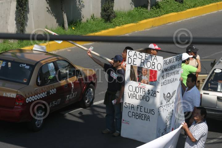 MÉXICO, D.F., 01AGOSTO2010.- Vecinos de la colonia, La Malinche, quienes formaron el Frente Amplio contra de la Supervía, realizaron una cadena humana sobre la avenida Luis Cabrera para exigir, no se realizan las obras de construcción ya que afectaran con la destrucción de casas y afectara a la ecología. FOTO: ENRIQUE ORDÓÑEZ/CUARTOSCURO.COM