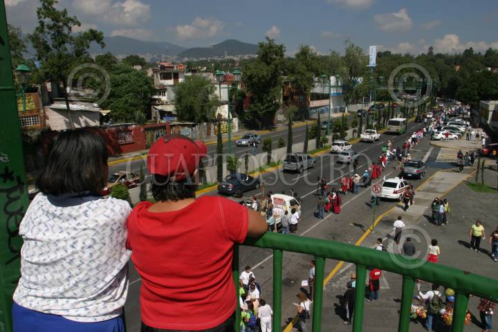 MÉXICO, D.F., 01AGOSTO2010.- Vecinos de la colonia, La Malinche, quienes formaron el Frente Amplio contra de la Supervía, realizaron una cadena humana sobre la avenida Luis Cabrera para exigir, no se realizan las obras de construcción ya que afectaran con la destrucción de casas y afectara a la ecología. FOTO: ENRIQUE ORDÓÑEZ/CUARTOSCURO.COM