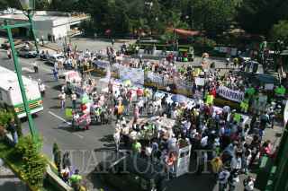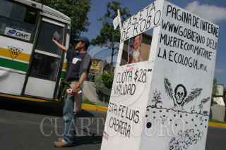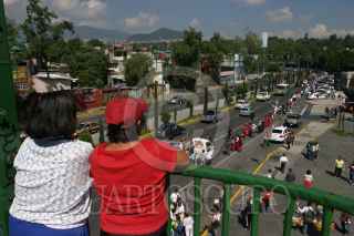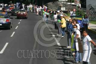 MÉXICO, D.F., 01AGOSTO2010.- Vecinos de la colonia, La Malinche, quienes formaron el Frente Amplio contra de la Supervía, realizaron una cadena humana sobre la avenida Luis Cabrera para exigir, no se realizan las obras de construcción ya que afectaran con la destrucción de casas y afectara a la ecología. FOTO: ENRIQUE ORDÓÑEZ/CUARTOSCURO.COM