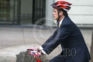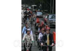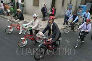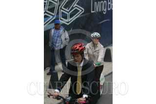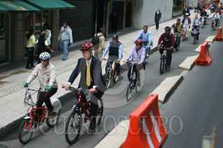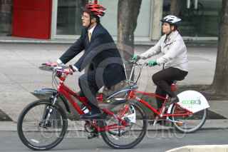 MÉXICO, D.F., 02AGOSTO2010.- Marcelo Ebrard Casaubon, Jefe de Gobierno Capitalino, junto a Martha Delgado, Secretaria del Medio Ambiente local, durante el informe del Programa Ecobici y recorrido por la ciclovia que se encuentra en la avenida Paseo de la Reforma. FOTO: ENRIQUE ORDÓÑEZ/CUARTOSCURO.COM