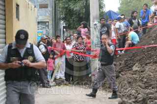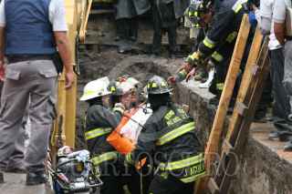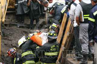 MÉXICO, D.F., 02AGOSTO2010.- El reblandecimiento de la tierra, provoco un alud en una obra de drenaje en vía pública, dejando un saldo de dos trabajadores muertos, al parecer menores de edad, y tres mas lesionados. Esto en la calzada de la Naranja, en el Pueblo Santiago Ahuizotla, en los limites de la delegación Azcapotzalco y el municipio de Naucalpan. FOTO: SAÚL LÓPEZ/CUARTOSCURO.COM